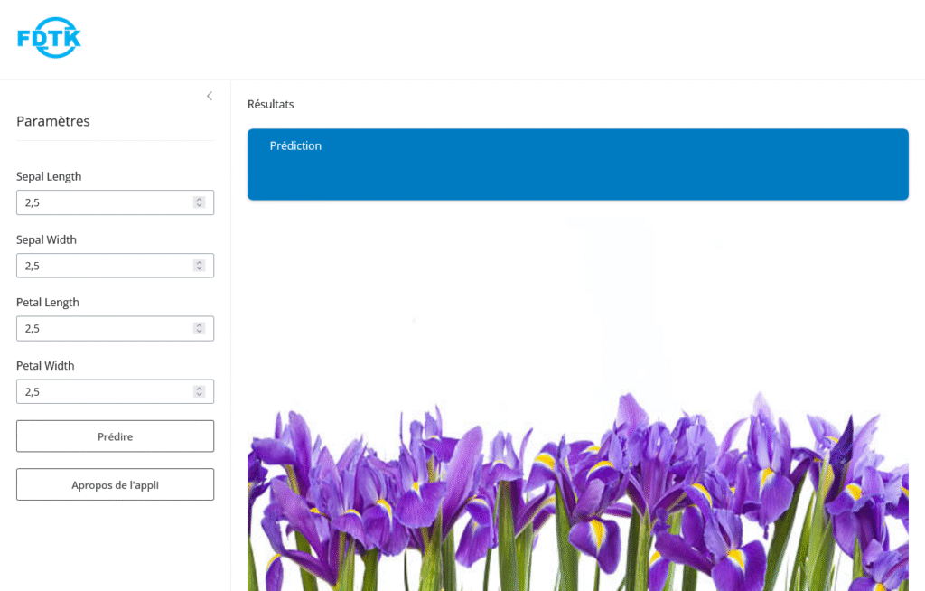 En cliquant sur “Prédire”, l’application affiche la prédiction, ici “virginica”.